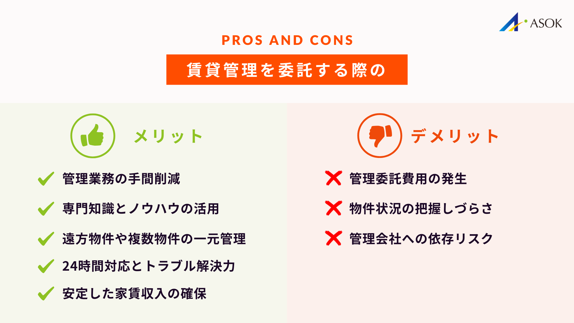続いて、管理業務を委託することで得られるコスト削減、手間削減、トラブル対応力などの具体的なメリットを整理します。最後に、管理会社選びにおいて着目すべき手数料体系、対応品質、報告体制などの重要なポイントを具体的にご説明します。